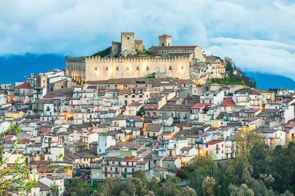 Il villaggio, che ha ottenuto il titolo di uno dei borghi più belli d’Italia nel 2015, è sovrastato da una collina su cui si erge l’imponente castello antico, simbolo della città.